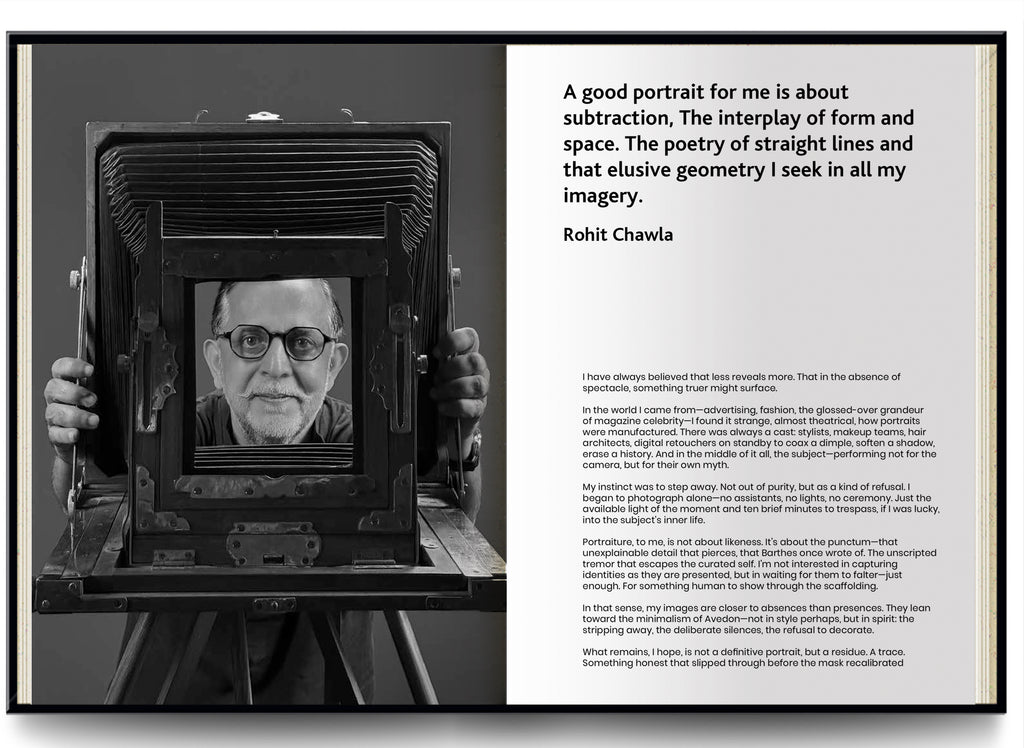 “An artist in his studio is an image of solemn symmetry. The studio is a sacred space where stillness, solitude and movement exist in harmony. It is also a forbidding ascetic realm where creation is a struggle and rapture, a private conversation between the mind and the canvas,” says Rohit Chawla. This publication presents some of India’s iconic artists at work and play, photographed by Rohit Chawla for the book and an exhibition in waiting. A part of Chawla’s larger repertoire of creative masters from across the world, these quiet portraits capture the intimacy between photography and the art of painting and sculpture. Here, the artist is a work of art himself.